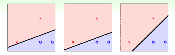 在线性分类问题中我们学习了 pocket 算法,我们可以使用这两种算法在线性可分数据集上找到正确的分类器,但由于 PLA 遇错更新 的特点,找到哪一个分类器是随机的: