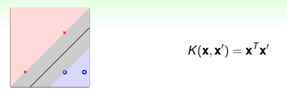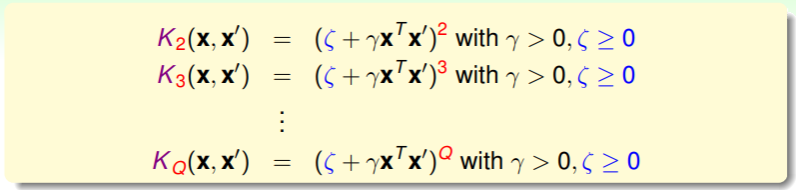 - 因此,计算 QP 问题中矩阵 可以写为: ,由 kernel function 完成关键的转换与内积运算;