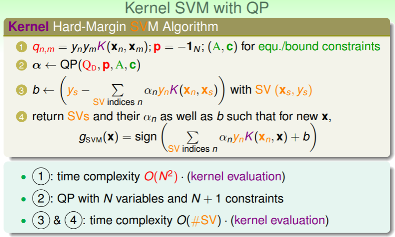 - 使用 QP 问题求解 Kernel SVM 的过程就如上图,