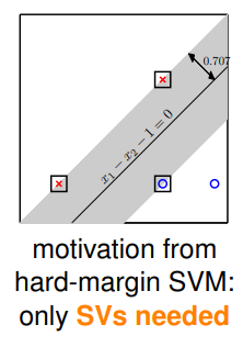 对 soft-margin SVM 的假设仔细察看,可以很容易发现,这里 并不是线性的条件,它是对每个样本的 label 和预测的正误判断,因此就不是 QP 问题,而之前讨论的 Dual SVM 、Kernel SVM 在这里也就不再适用。😢