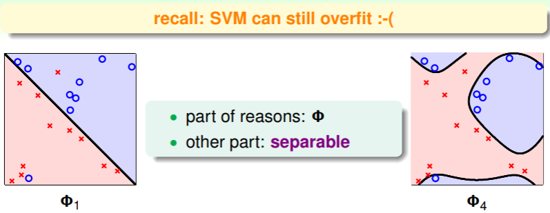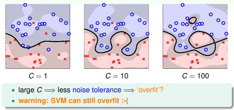 - 这表明,即使是 soft-margin SVM ,仍有过拟合的风险,因此我们要小心地考虑参数 的抉择;