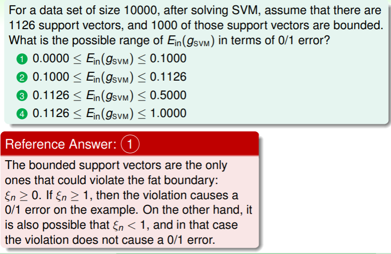 除了要满足 才能得到 外,还要满足 ,即 margin violation 的程度 ,这意味着是在 soft-margin SVM 的 boundary 内部的 SV ,通常称为 free SV 。