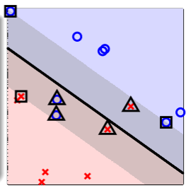 - 这意味着祛除该样本的留一交叉验证中,两个假设 与 没有区别,即 ,而对真正有用的支撑向量,其在留一交叉验证中的影响 ;