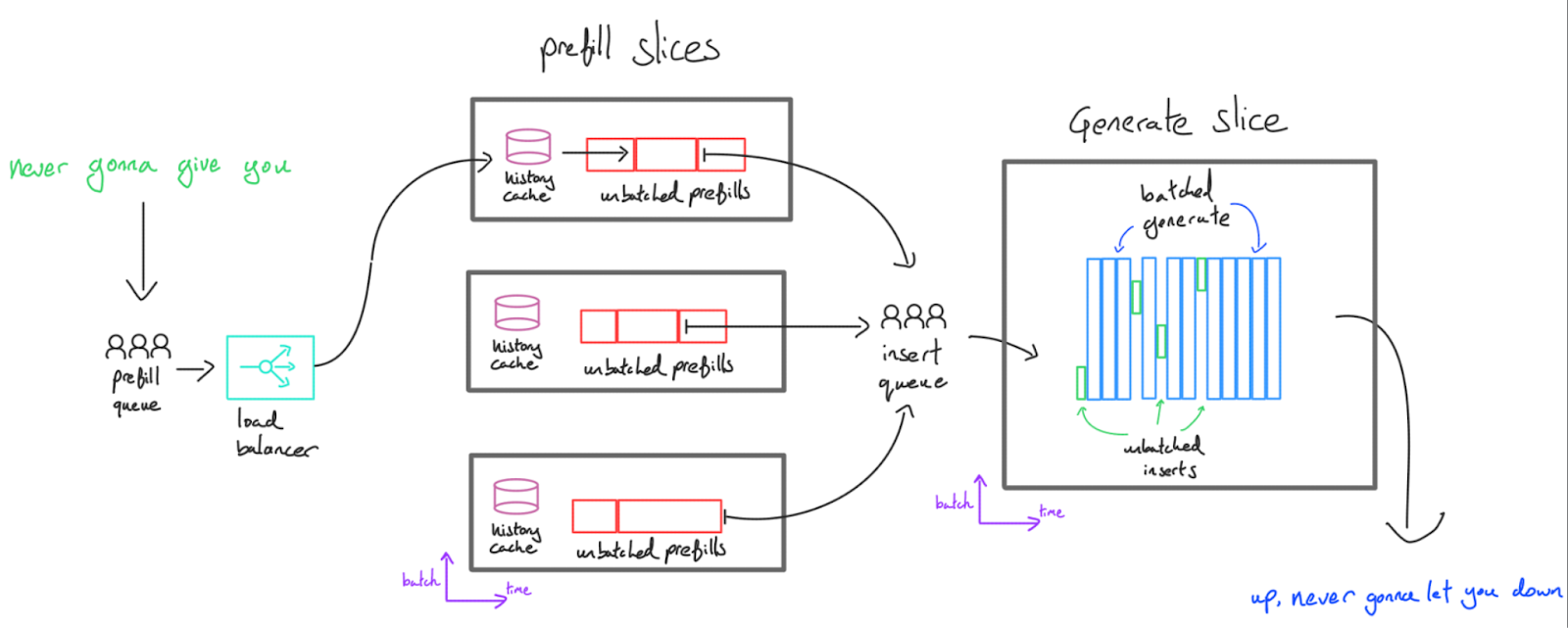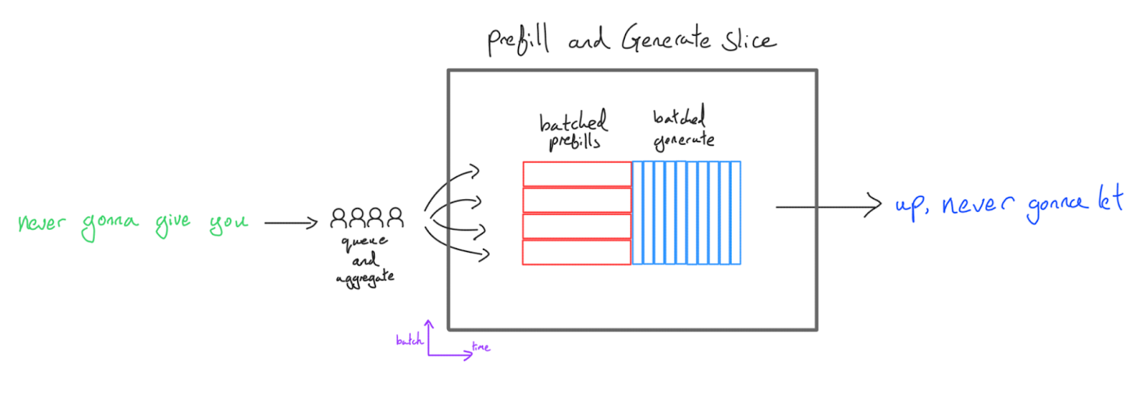 核心结论: 在生成阶段,总体的 Token Batch Size 必须大于 ,才能使线性/FFN层算子进入计算受限状态(例如 TPU v5e 在 bf16 下需 240 个并发 Token)。由于生成过程是逐 Token 串行执行的,这迫使我们必须进行多请求并发调度(Continuous Batching),而这在工程实践中难度极大。