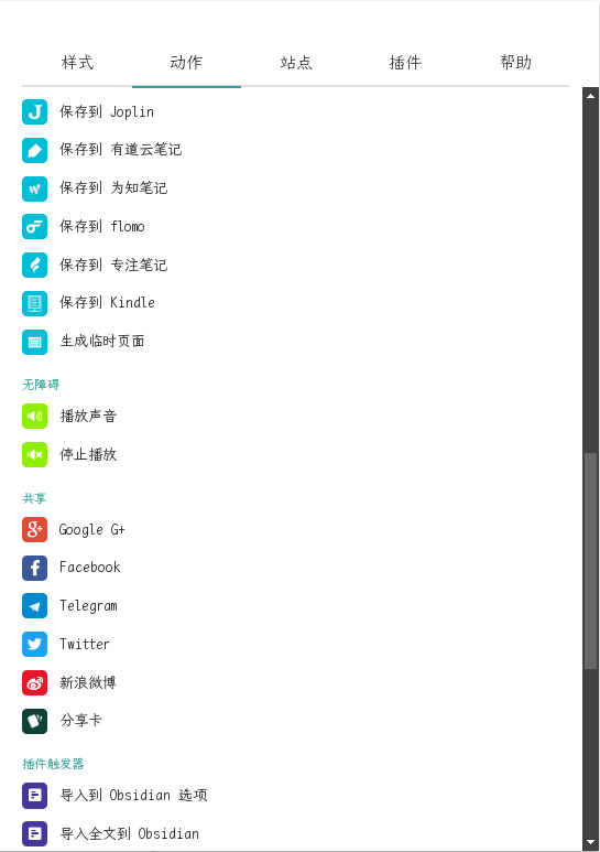 提取网页中的内容,一般而言就是复制粘贴,除此之外笔者在 Google 插件商店中发现了 SimpRead 插件,可以对网页进行重排版,并方便地以不同笔记的格式导出,并且针对不同网页进行了独特的优化。SimpRead 能够提供丰富的功能,下如展示了其面板中提供的一键导入笔记、分享等功能: